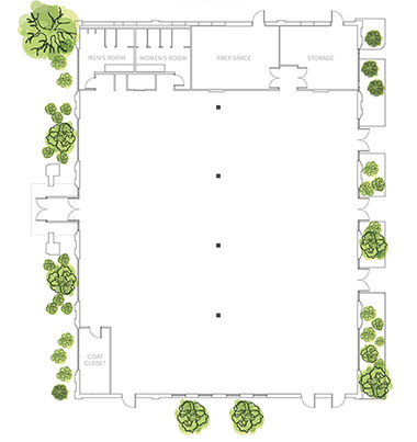 Selecting this space also allows the opportunity to add of the South Lounge. This area is located in an adjacent building and features three separate rooms including a main gathering space, full restroom and dressing area, as well as an additional room for hair and makeup. This is an excellent space for bridal parties to get ready or serves as a green room if needed. Access to this space would begin at 10:00AM on the event date and run through the event.
