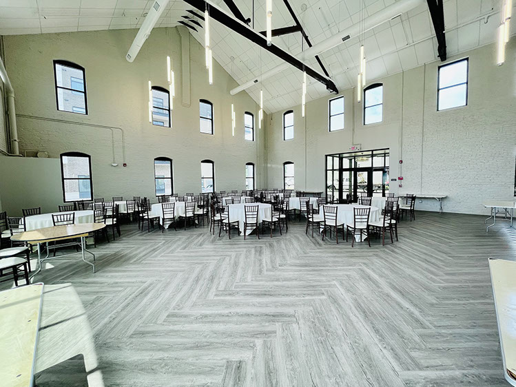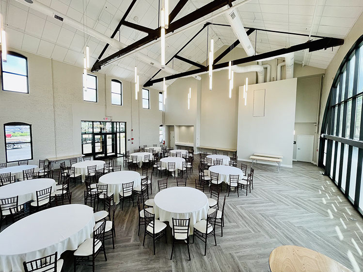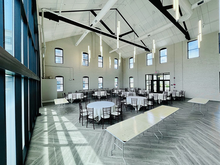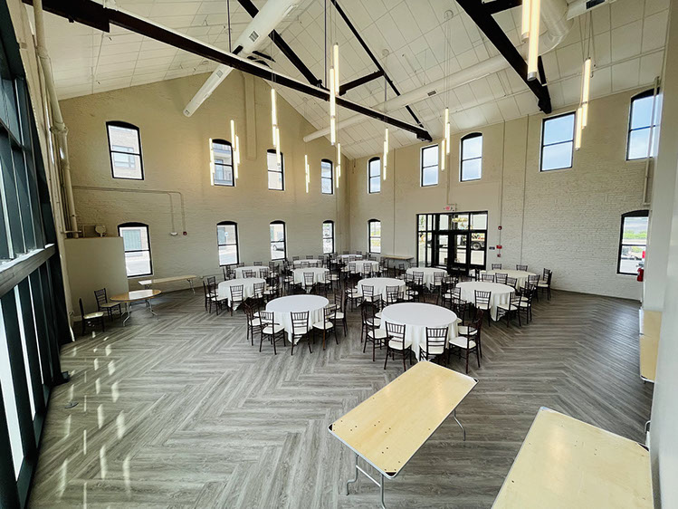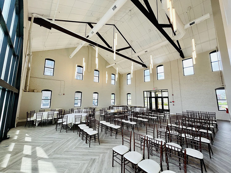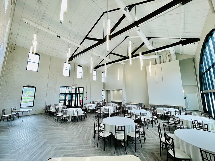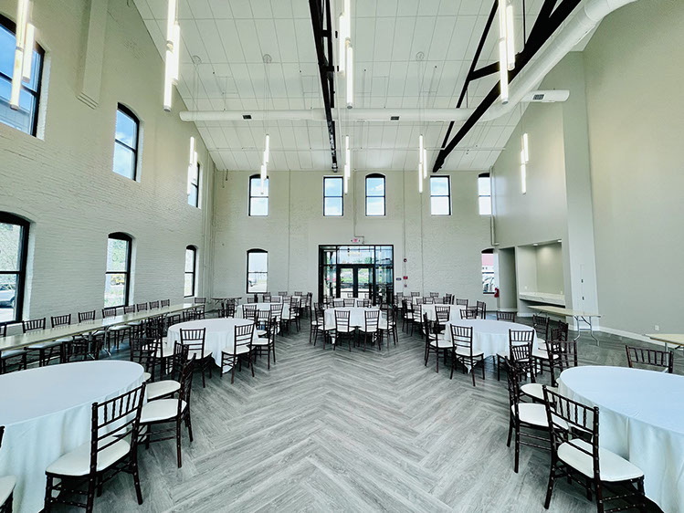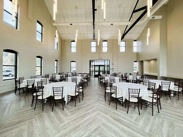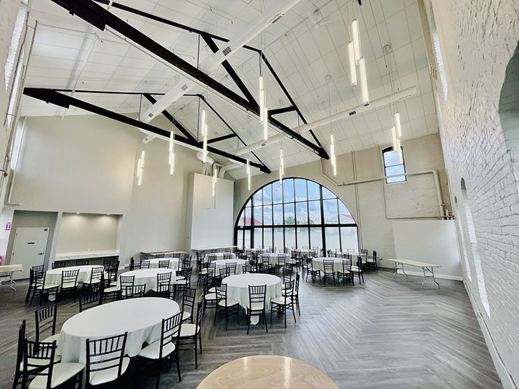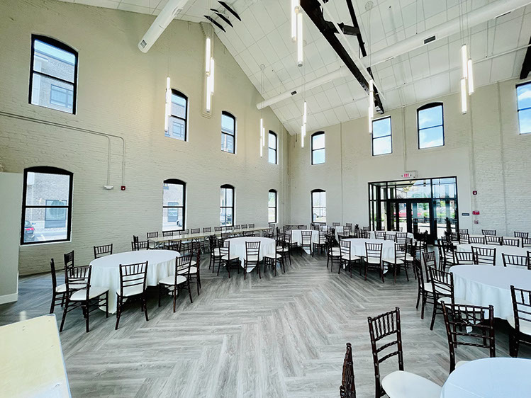 The Reserve is located at 380 Missouri Avenue, Jeffersonville, IN 47130. Designed as an intimate event space at approximately 2400 square feet, maximum posted capacity of 130 for a seated dinner. This space features an enormous, picturesque, arch window facing South to showcase the Louisville skyline and George Rogers Clark Memorial Bridge. Neutral finishes with modern styling allow for the event space to easily blend with any decor and event type. This space is perfect for intimate wedding receptions, bridal showers, baby showers, and corporate meetings.